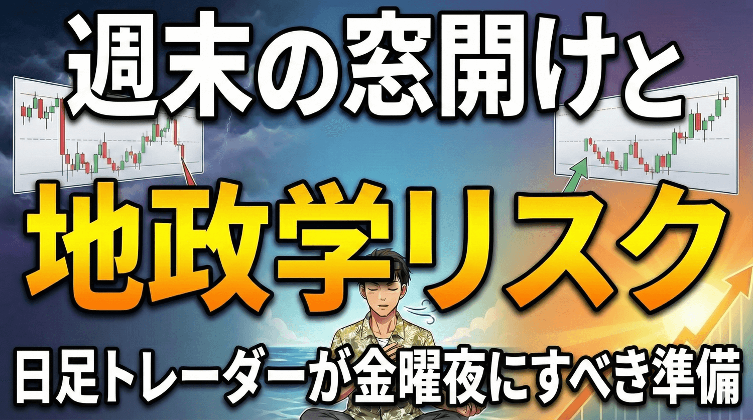 土日は市場が閉まっていますが、世界は止まりません。戦争、テロ、選挙、あるいは突発的な災害。これらの地政学リスク(※1)は、市場が閉じている間に蓄積され、月曜朝の「窓開け」となって噴出します。日足トレーダーにとって、金曜夜の過ごし方は、週明けの運命を左右する極めて重要な「守りの儀式」なのです。